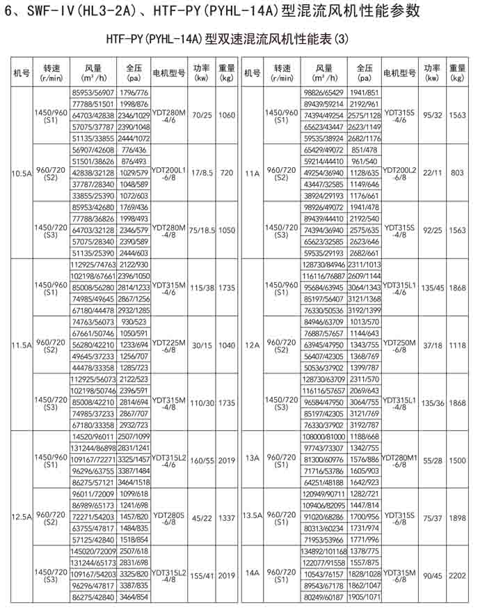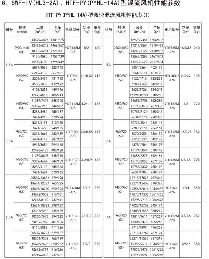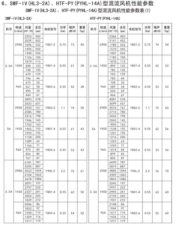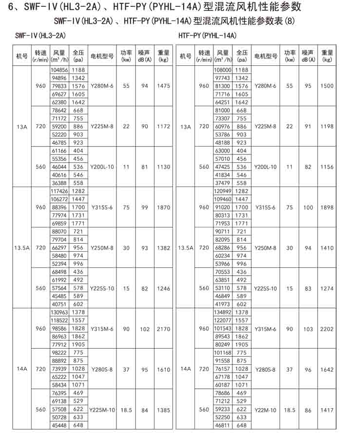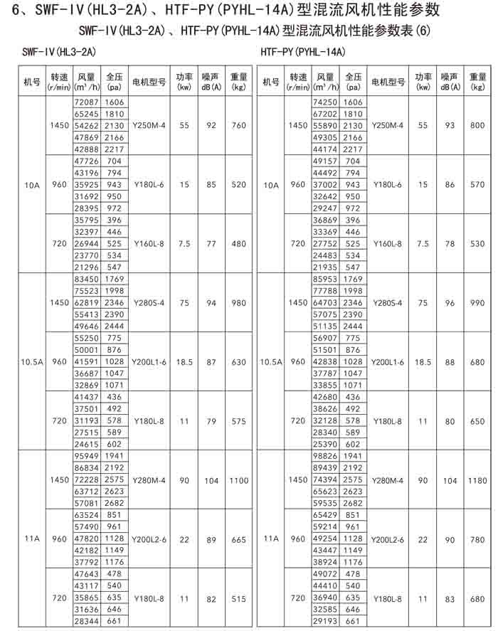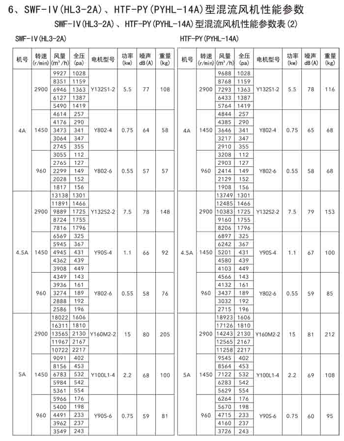 三、SWF-IV(HL3-2A)、HTF-PY(PYHL-14A)系列節(jié)能混流風(fēng)機(jī)