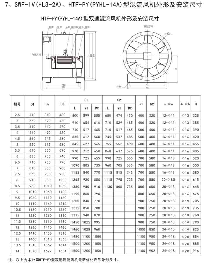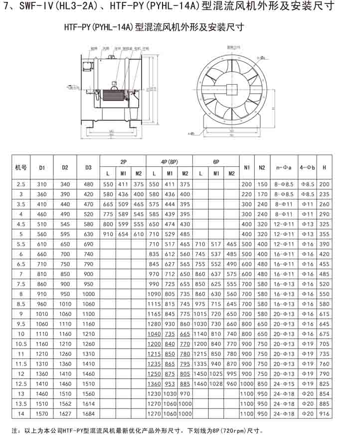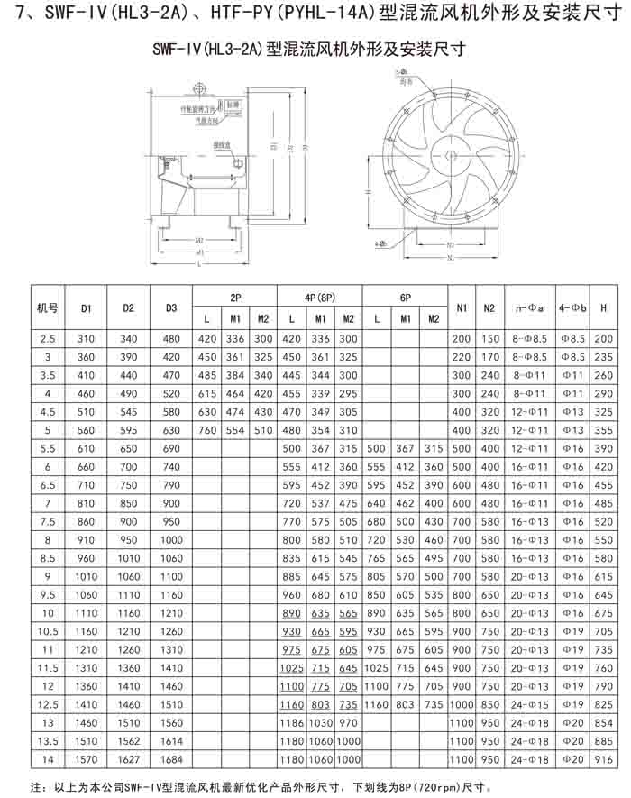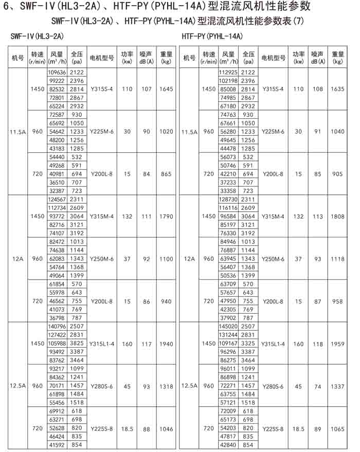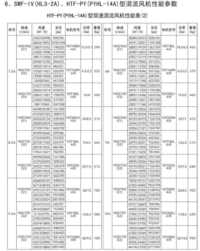 三、SWF-IV(HL3-2A)、HTF-PY(PYHL-14A)系列節(jié)能混流風(fēng)機(jī)
