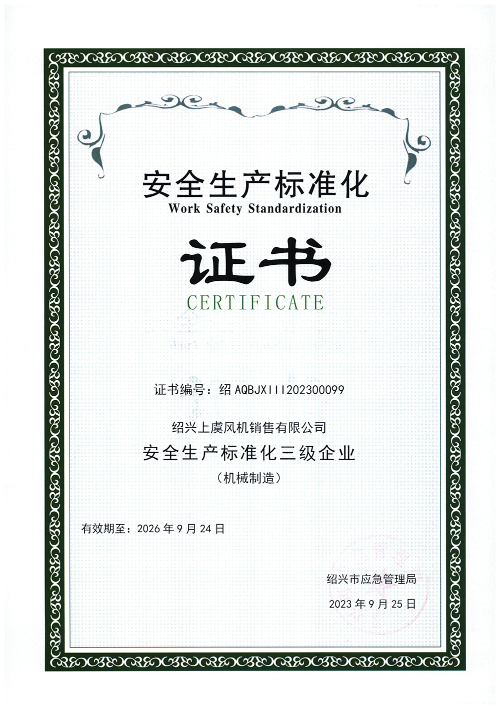 安全生產(chǎn)標(biāo)準(zhǔn)化證書(shū) |