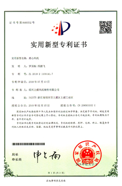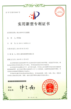 離心風(fēng)機(jī)專(zhuān)利證書(shū) |