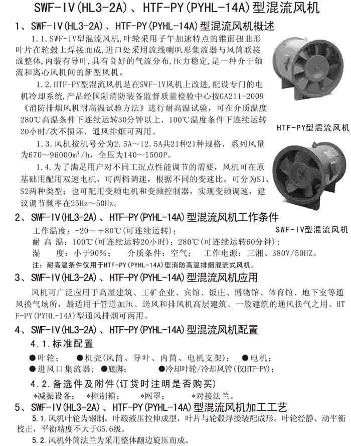 三、SWF-IV(HL3-2A)、HTF-PY(PYHL-14A)系列節(jié)能混流風(fēng)機(jī)