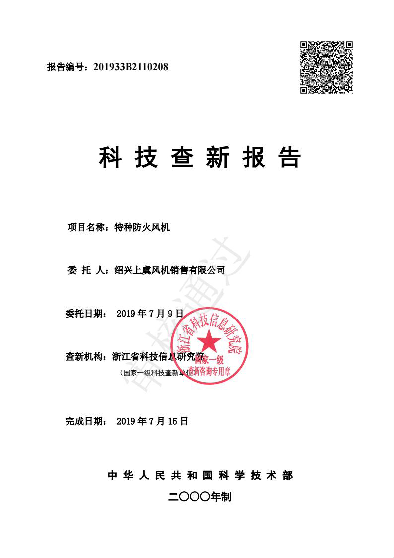 科技查新報(bào)告(耐高溫消防排煙風(fēng)機(jī)) |